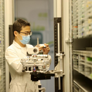 浙江德清县第三人民医院药师在智慧药房核对药品。新华社发(谢尚国摄)