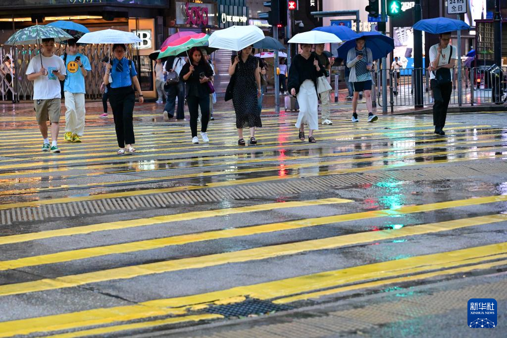 8月14日,人们撑伞行走在香港街头。新华社记者 朱炜 摄