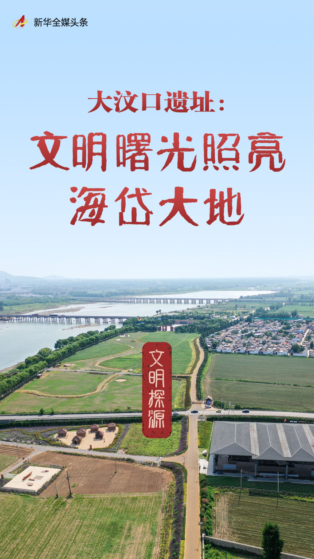 这是2025年5月20日拍摄的大汶河(左上)、大汶口遗址博物馆(右上)和大汶口遗址核心区(左下)(无人机照片)。新华社记者 陈朔 摄