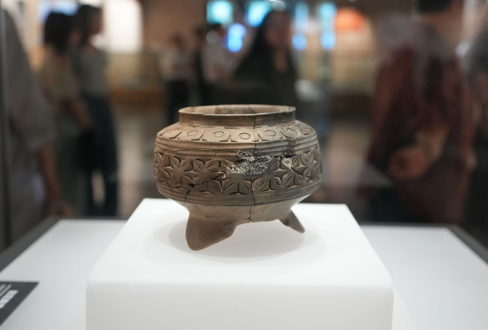 这是2025年5月20日在大汶口遗址博物馆拍摄的刻花陶罐。新华社记者 徐速绘 摄