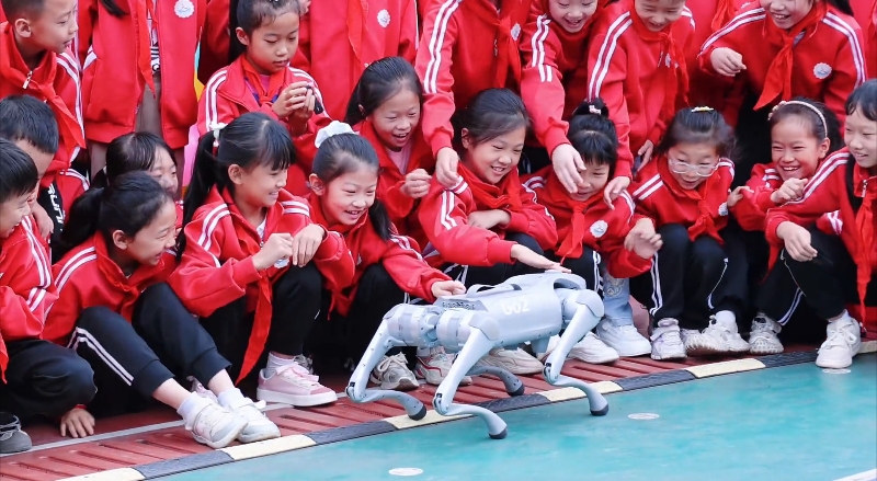 在云南省曲靖市麒麟区麒麟小学的“开学第一课”上,人工智能机器人、机器狗与学生们近距离互动,丰富多彩的科学实验直接将科技感拉满,让学生们感受现代科技的魅力。