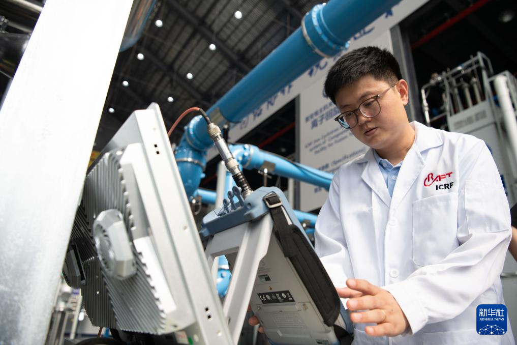 9月11日,在位于合肥市的聚变堆主机关键系统综合研究设施园区内,科研人员在查看离子回旋加热系统的运行状态。新华社记者 张端 摄