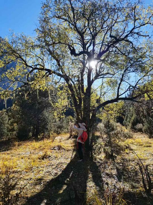 不知不觉间,阳光穿透晨雾,金色的光芒铺洒大地。此次徒步,我们从尼古个牧场出发,途经阿架岗牧场、向云坡、独古、流石滩,最终抵达海拔4220米的终点阿布吉措,全程往返约8.8公里,爬升约630米。