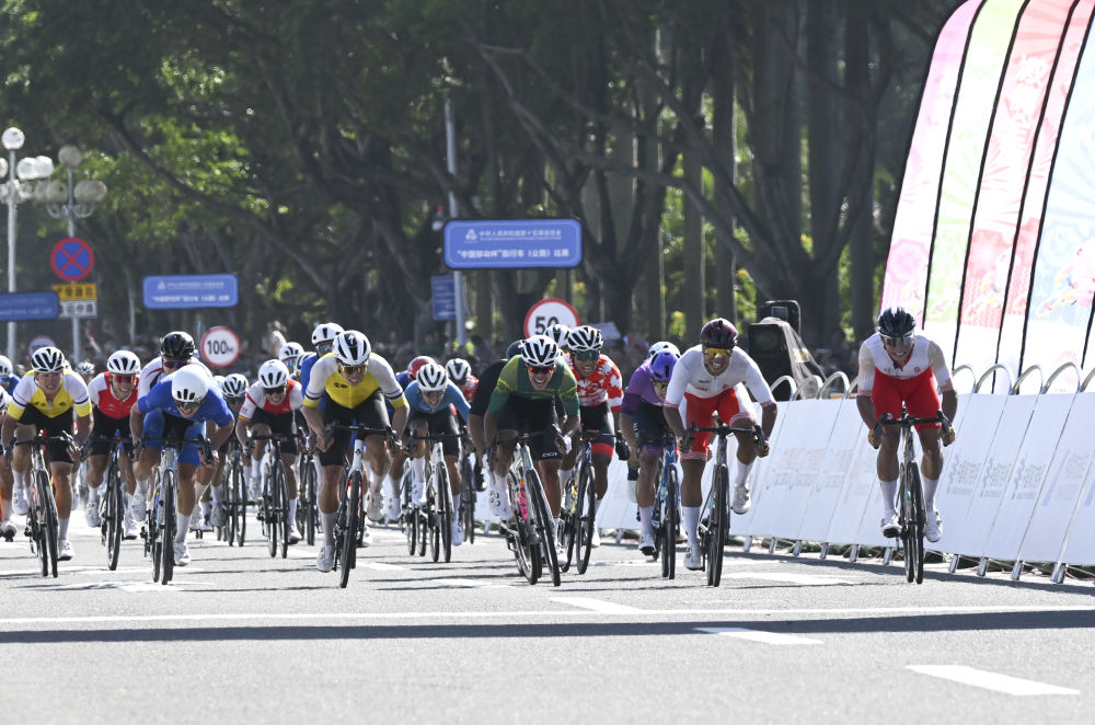 新华社珠海11月8日电 8日,在第十五届全国运动会跨境赛事——公路自行车男子个人赛中,山东队刘志城率先撞线。