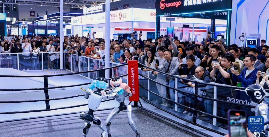 11月14日,观众在第二十七届中国国际高新技术成果交易会上观看机器人搏击比赛。新华社发