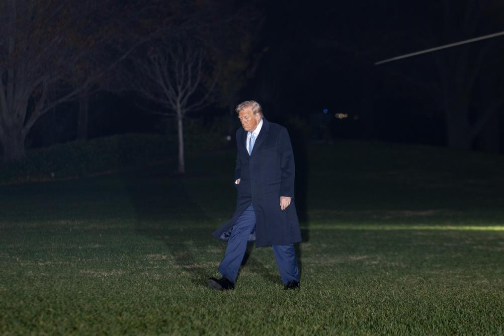 11月16日,在美国首都华盛顿,美国总统特朗普返回白宫。新华社记者胡友松摄