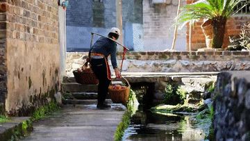 11月26日,郴州永兴县板梁村民在水边洗衣服。