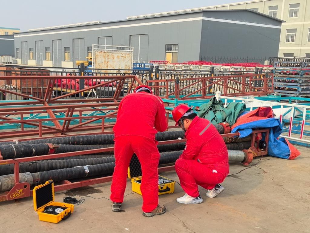 安徽中科昊音智能科技有限公司工作人员正在对油田软管管道进行声纹AI检测。受访者供图