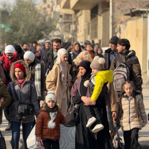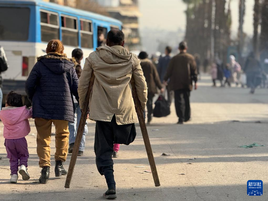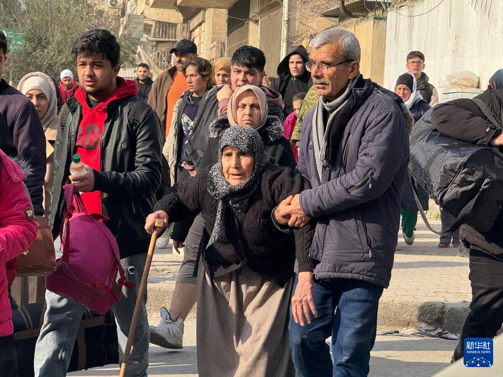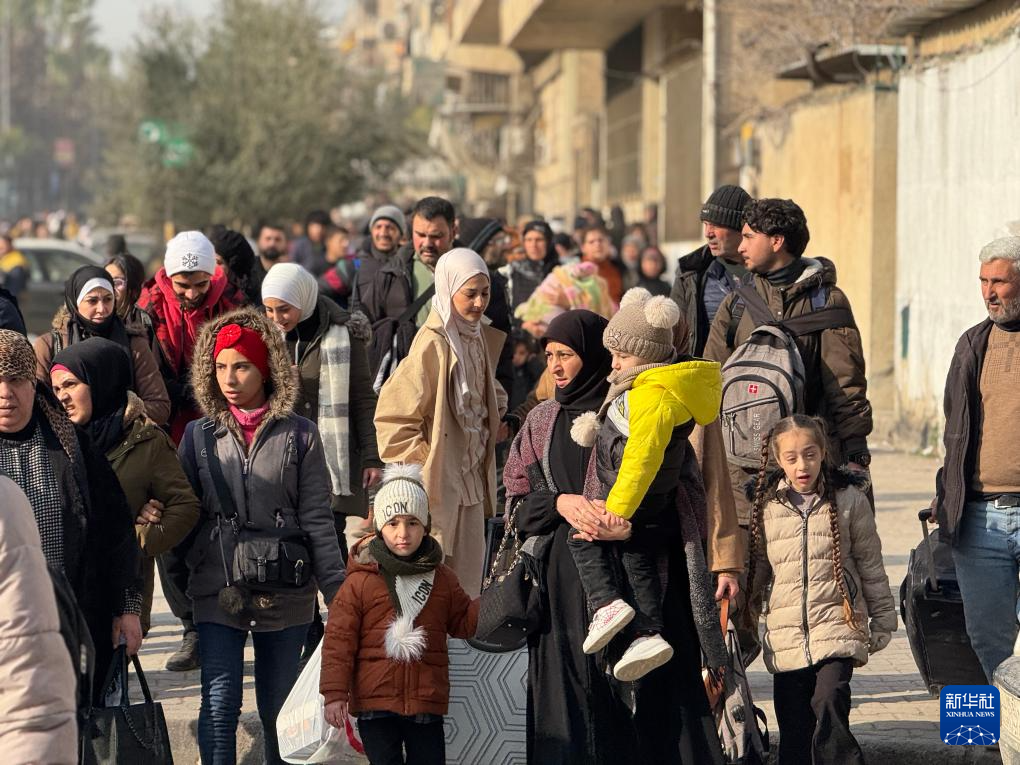 1月7日,在叙利亚北部阿勒颇市,人们从谢赫·马克苏德街区和阿什拉菲耶街区逃离(手机照片)。新华社发