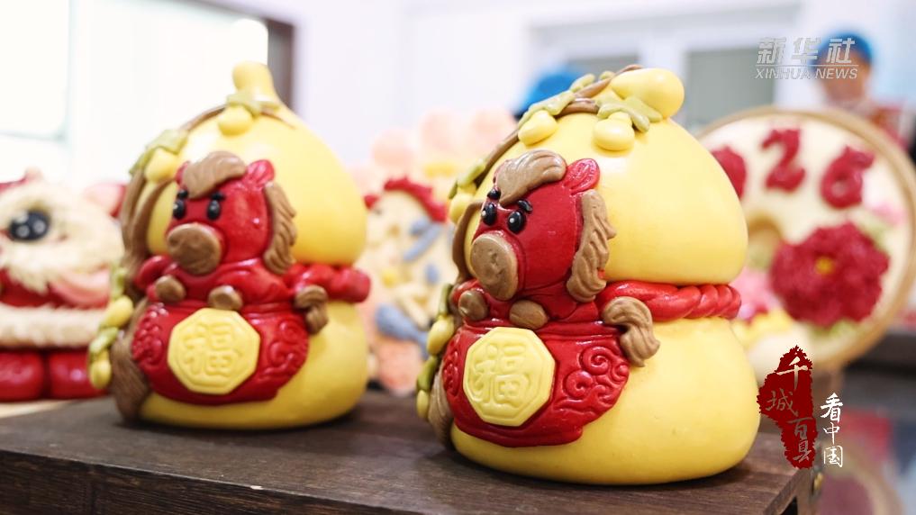 随着农历马年春节的脚步日益临近,山东省枣庄市山亭区一家花馍工作室,以“马”为创意主题,推出了一系列生动别致的花馍作品。