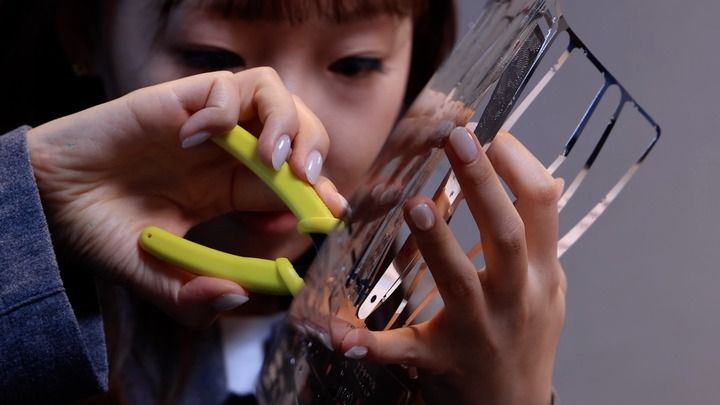 弄懂指示手册里的术语是第一关考验:水口钳与尖嘴钳什么时候切换?“颜色面”和“纹理面”,“水口位”和“扣点”怎么区分?弯折接口的最佳角度是多少?一连串问号接踵而至,纸质说明书与解说视频轮番上阵,才勉强帮我拼凑起前几片扇叶。