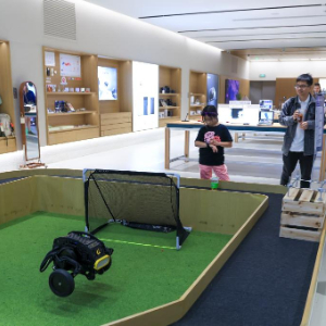 1月5日,顾客在深圳市南山区的INNO100全球创新旗舰店观看机器人产品演示。新华社记者 毛思倩 摄