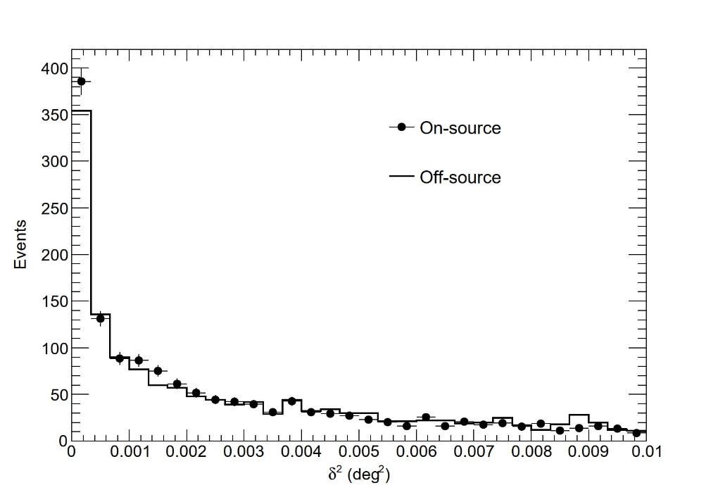 LACT工程样机于1月26、27日两晚累计观测到来自蟹状星云方向的宇宙线,其中有16个光子超过宇宙线背景。(天府宇宙线研究中心供图)