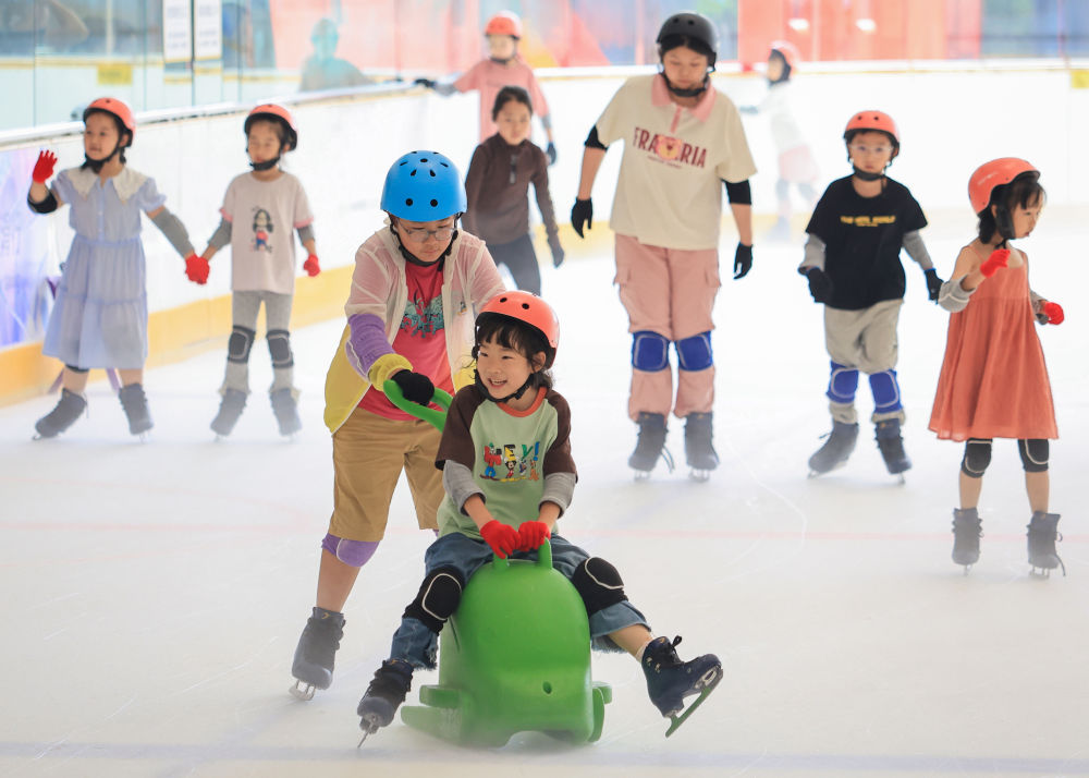 长三角的室内冰场传来孩童的欢笑声