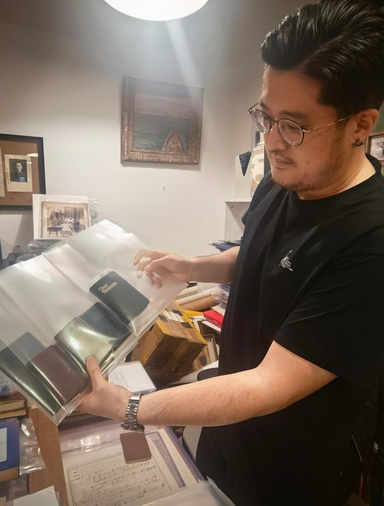 邹德怀向记者展示萨顿日记。新华社记者 蒋芳 摄