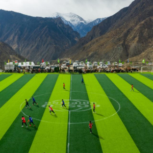 承载这份热爱的,是马利镇2025年新投入使用的“云上球场”——一座11人制标准足球场。它镶嵌在群山环绕的峡谷中,像一块绿色宝石,远处雪山静静矗立,注视着场上奔跑的身影。