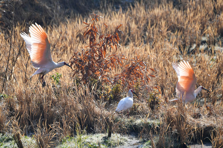 观鸟茶室视野最好,这里原是村民谢玉清的老宅,改造后租给运营公司。谢玉清把自家便利店升级成旅游服务站,傍晚常架起手机直播“鹮宝宝归巢”。金灿灿的稻田,晚霞中起舞的朱鹮,画面在社交媒体上收获无数点赞,也带来源源不断的订单。