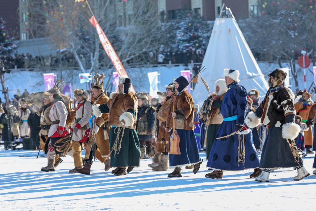 2025年12月21日拍摄的冰雪那达慕开幕式上的民俗表演。新华社发(康文魁 摄)