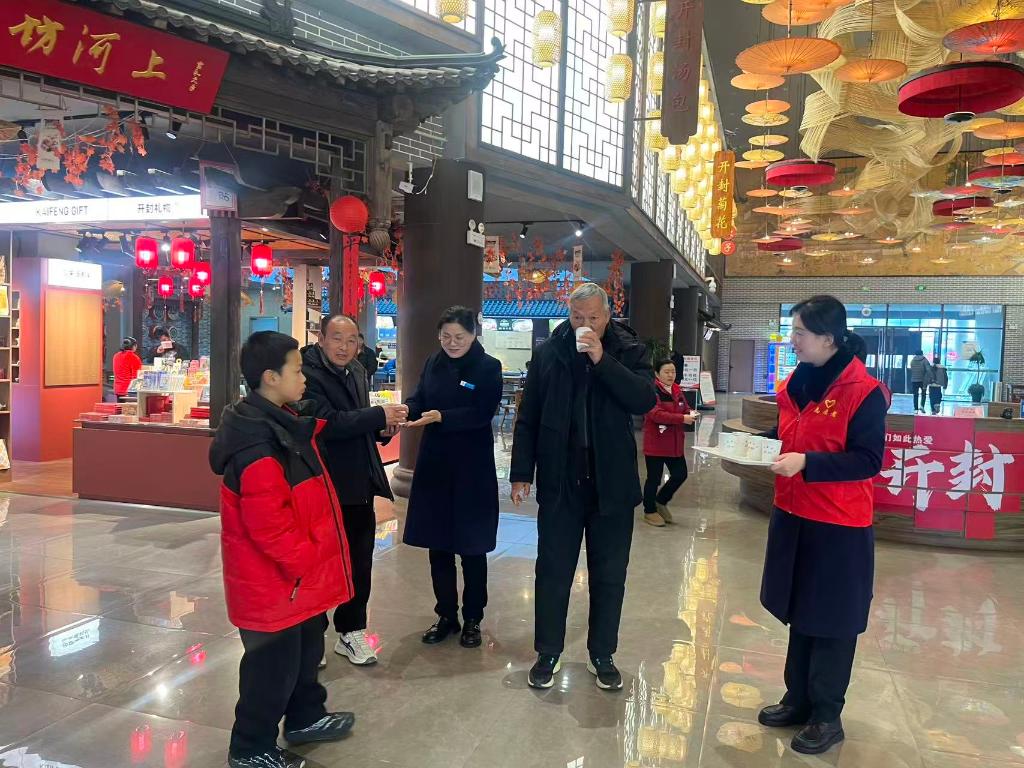 在G30连霍高速开封“宋文化”主题服务区,工作人员为过往司乘人员送上暖心姜茶。(受访者供图)