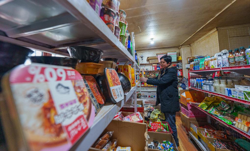 2月5日,玉麦乡一家超市的老板在整理货架。新华社记者 丁增尼达 摄