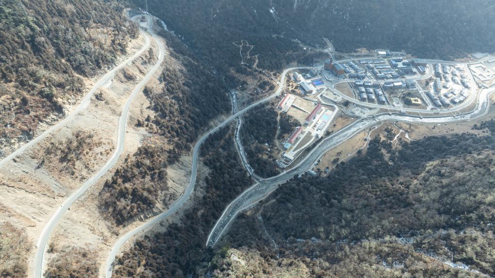 这是2月5日拍摄的玉麦乡及周边公路(无人机照片)。新华社记者 丁增尼达 摄