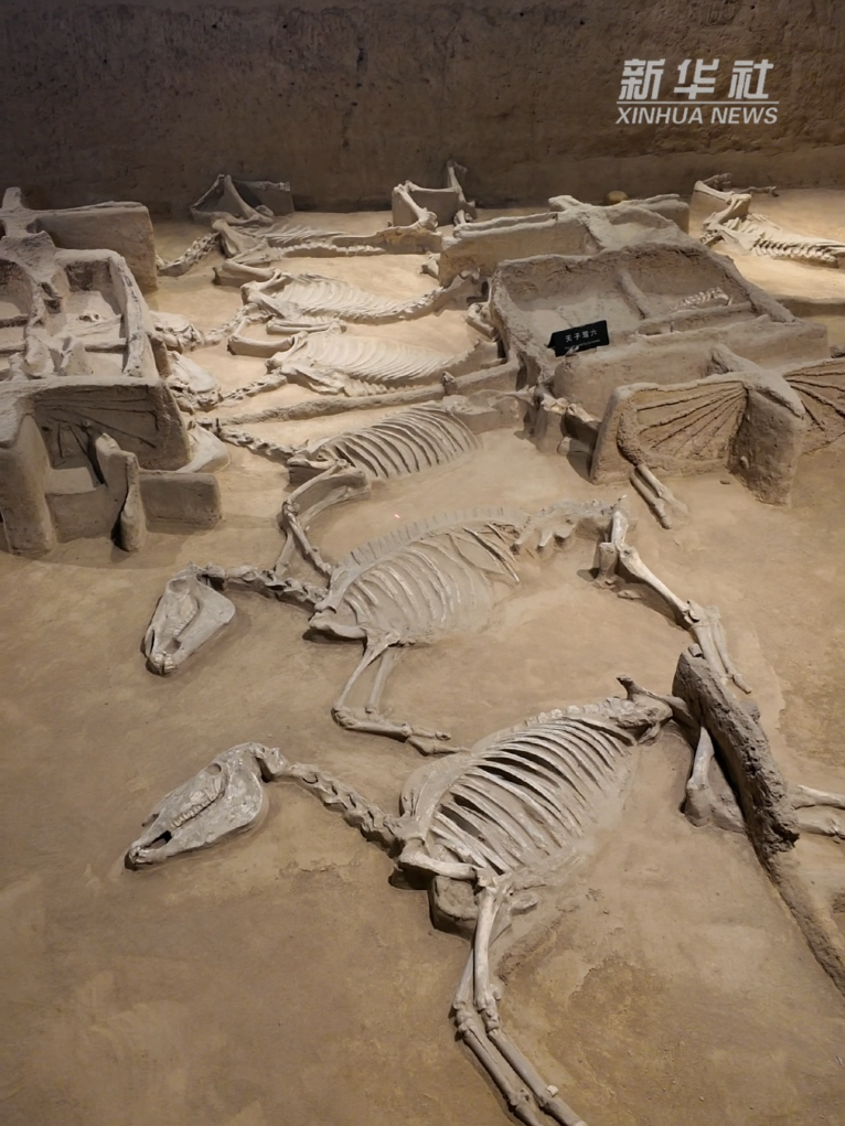 2002年,考古人员在洛阳东周王城遗址内,发现“天子驾六”车马陪葬坑。该车马陪葬坑南北长42.6米,东西宽7.4米,共清理出26辆车、70匹马和7只小狗。