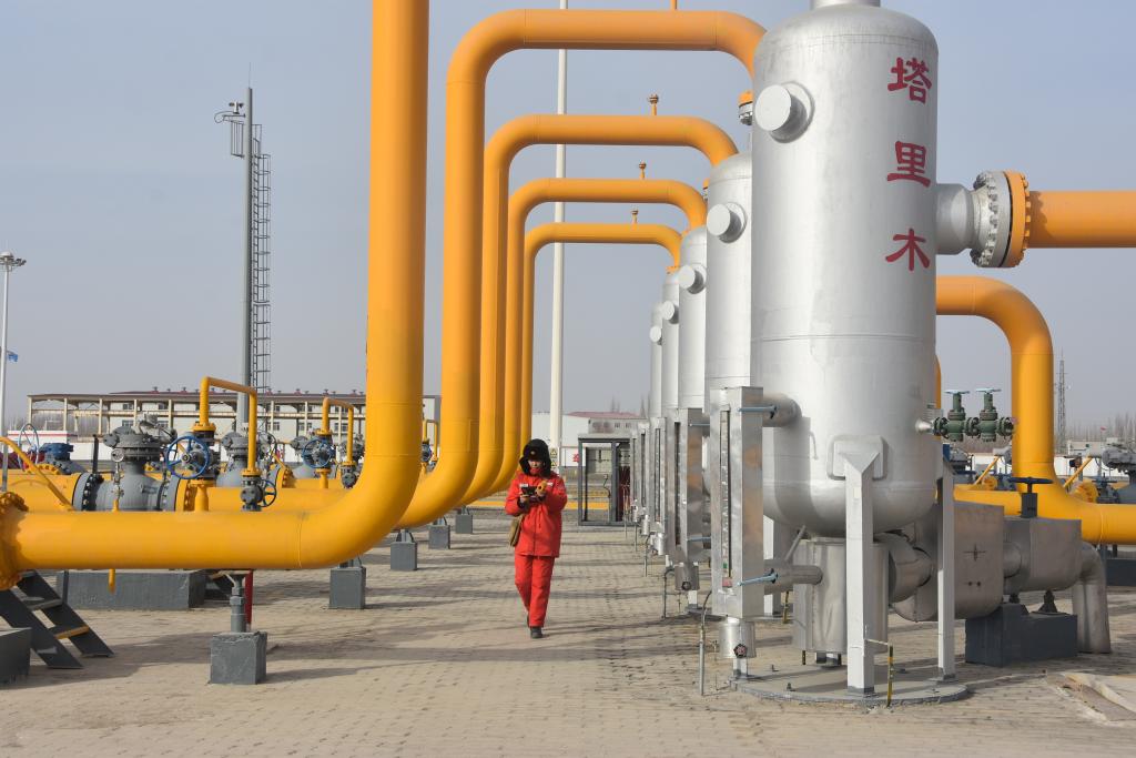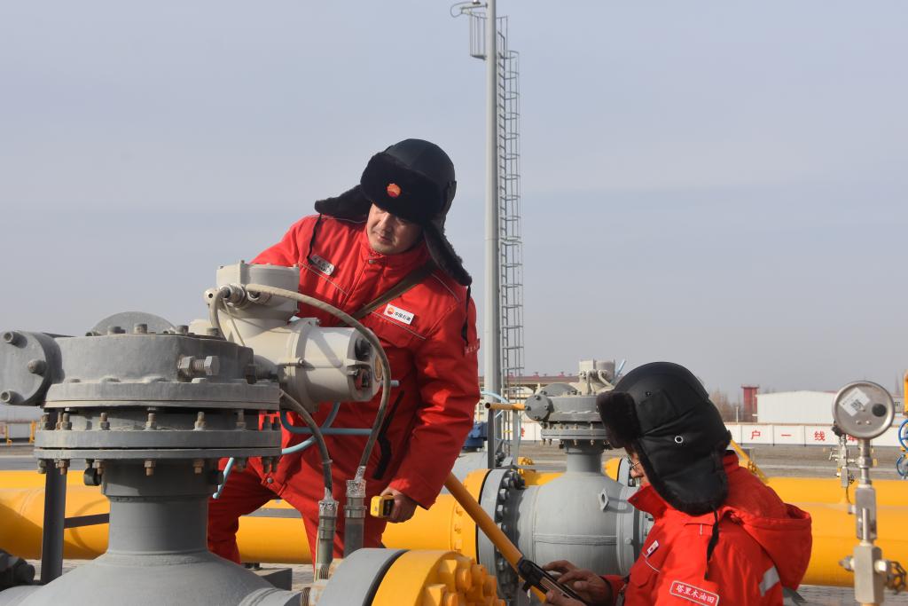 2026年2月4日,中国石油塔里木油田西气东输第一站员工正在巡检。新华社记者 顾煜 摄