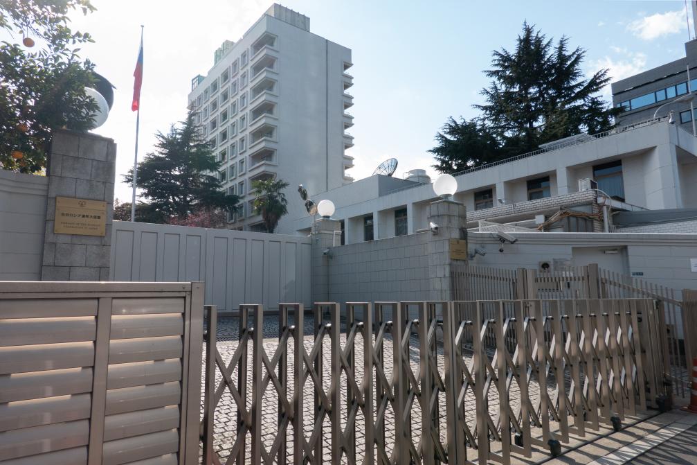 这是2022年2月23日在日本东京拍摄的俄罗斯驻日本大使馆。新华社记者张笑宇摄