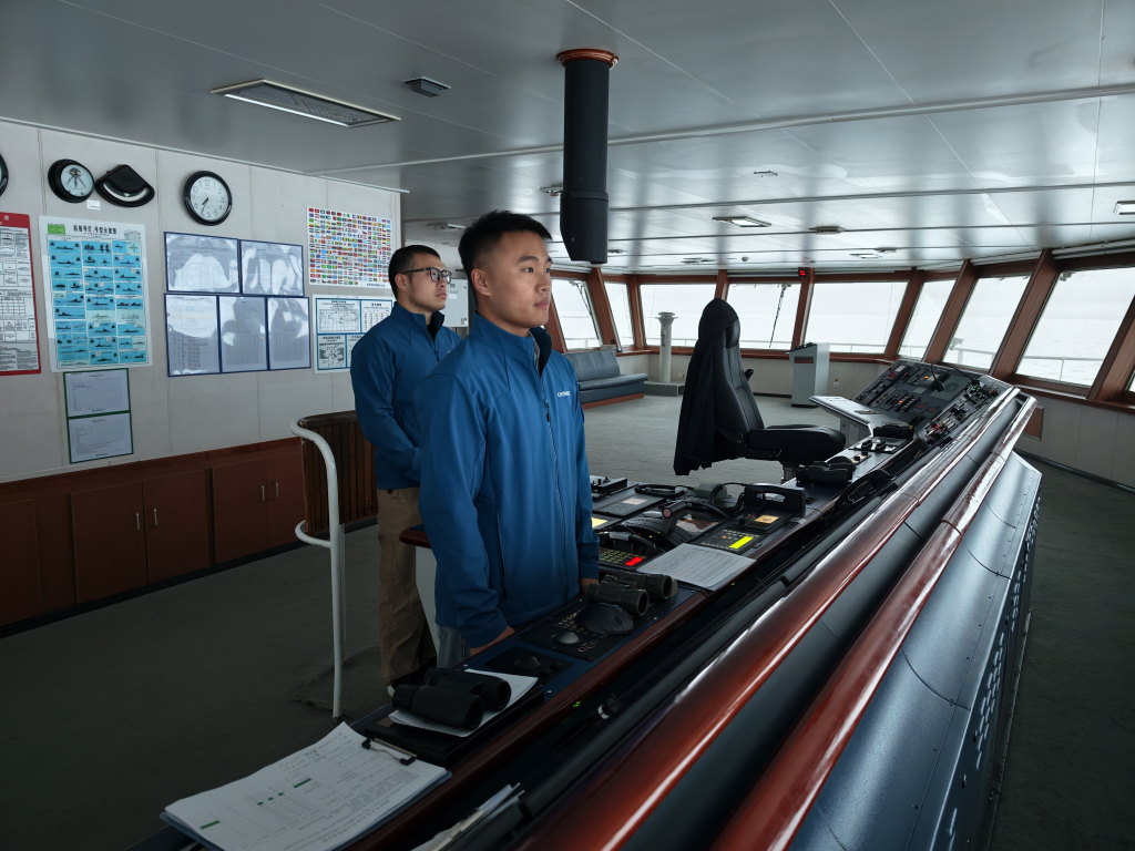 “第一次来南极,满是新奇;现在,更多是思考如何把工作做得更好。”他负责航行值班和全船消防救生设备管理,冰区航行时精神高度集中,“越了解,越敬畏”。