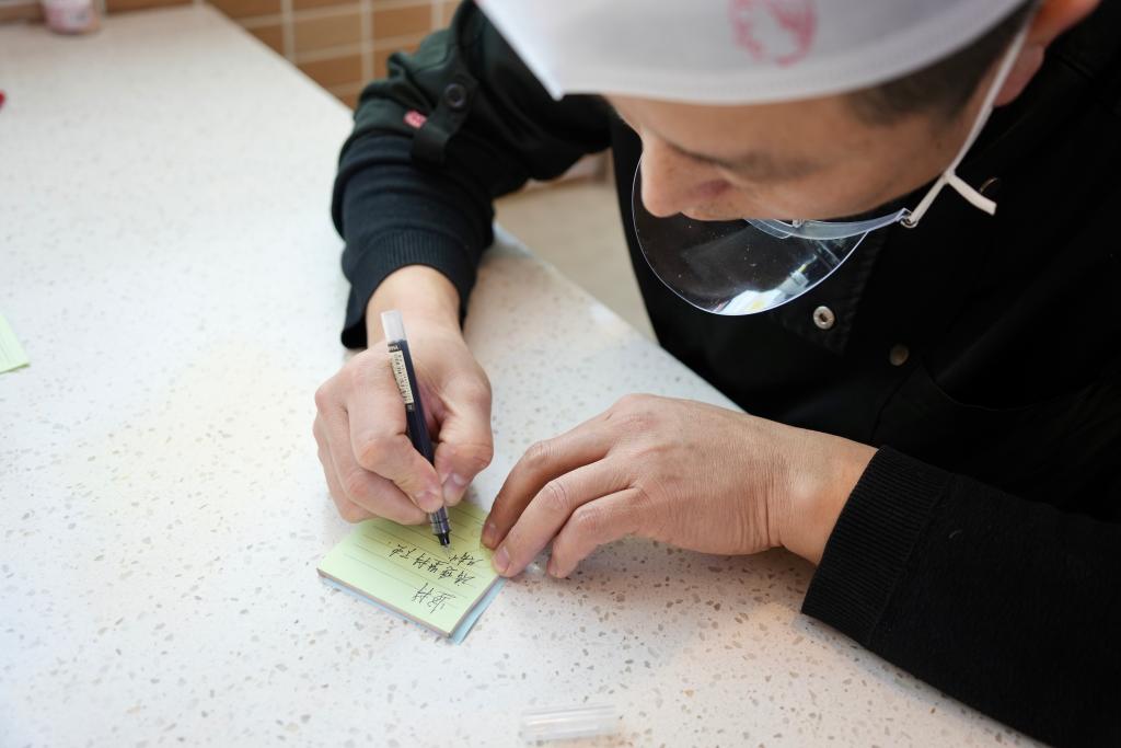 孔繁会利用空闲时间写便签。新华社记者 王祚 摄