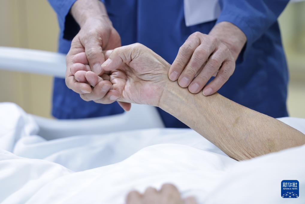 2月9日8时许,急诊科资深主任齐文升在重症监护病房为患者号脉。