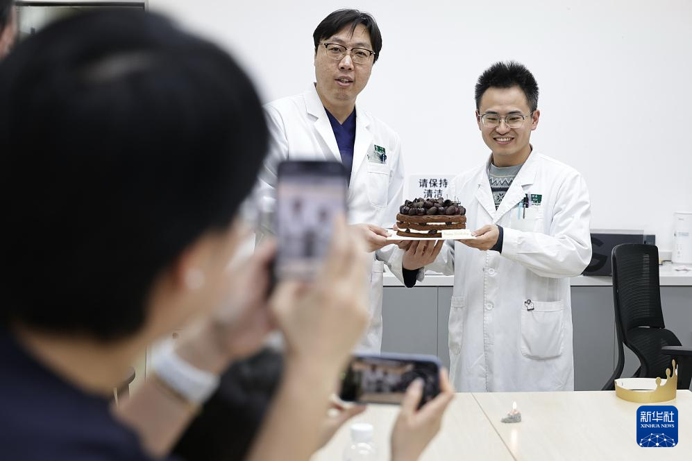 2月5日19时许,两位急诊科医生在休息室内庆祝生日。