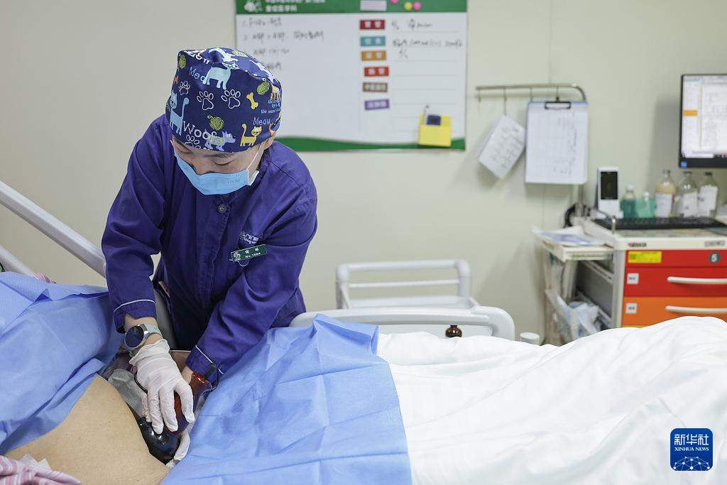 2月12日11时许,一名护士在重症监护室为一名患者进行电热砭石技术操作。