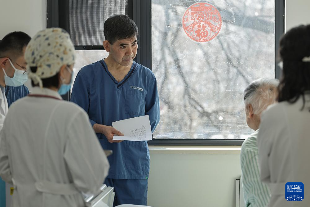 2月9日10时许,急诊科资深主任齐文生(左)在急诊病房查房。