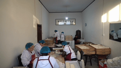 在霍州市霍嬷嬷年馍厂生产线上,工人们正加班加点地制作霍州年馍,以满足全国的订单需求。