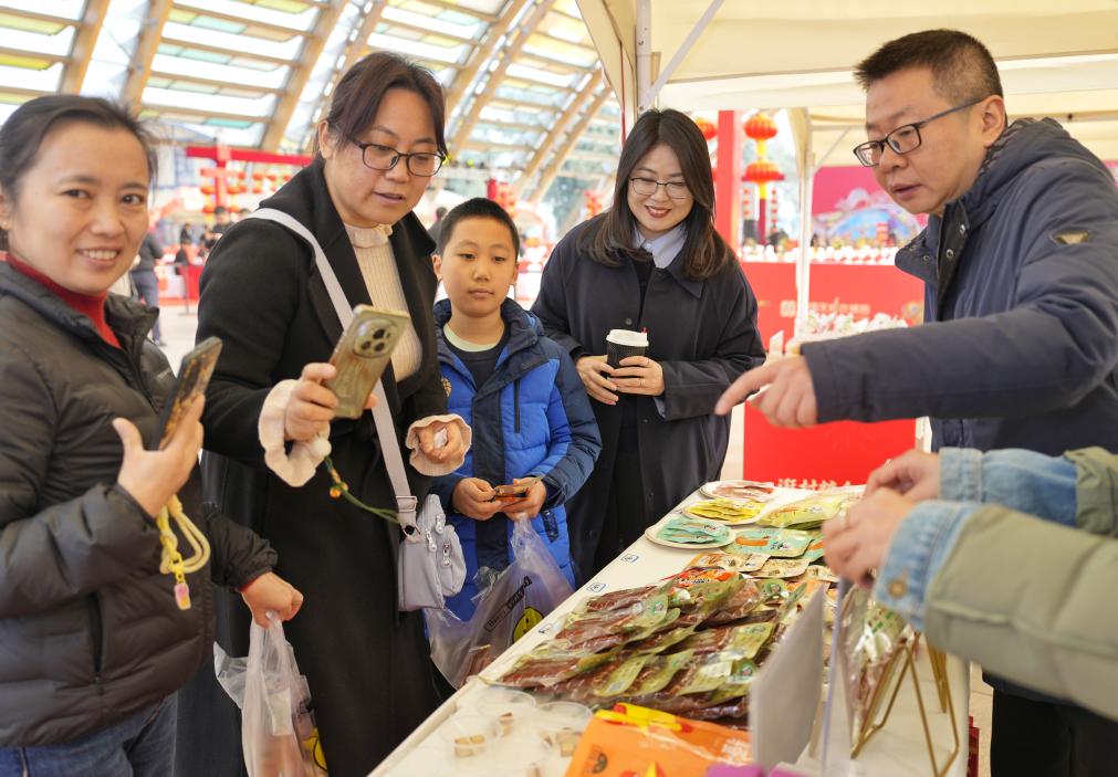 市民在新津区“村糖会”现场选购食品。新华社记者 刘坤 摄