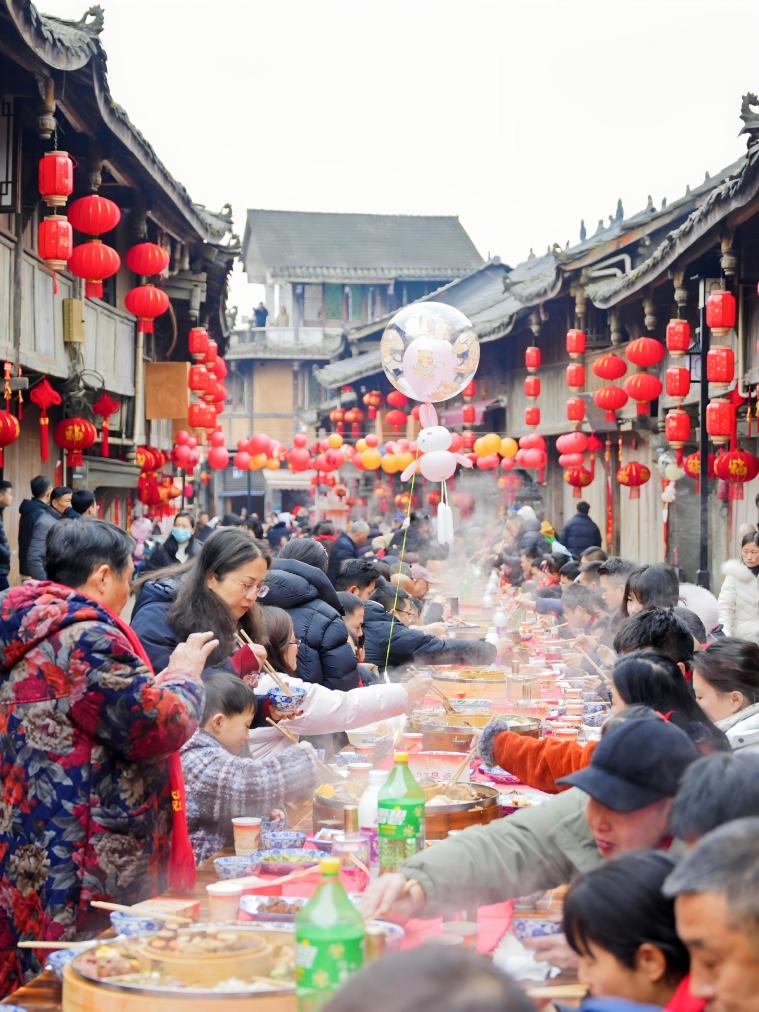 成都“村糖会”上的坝坝宴。新华社发