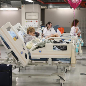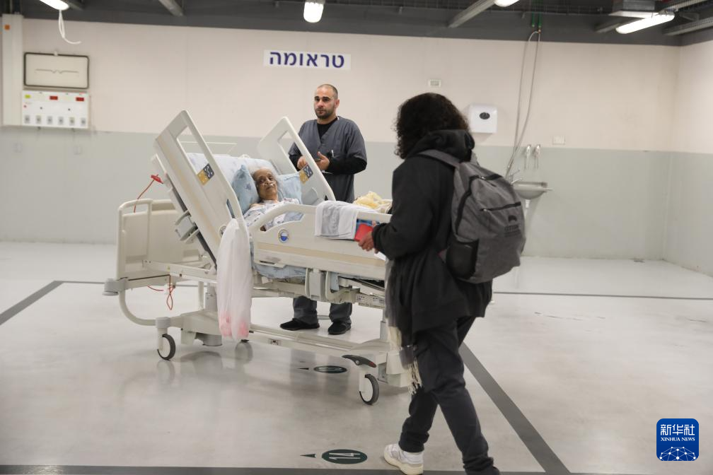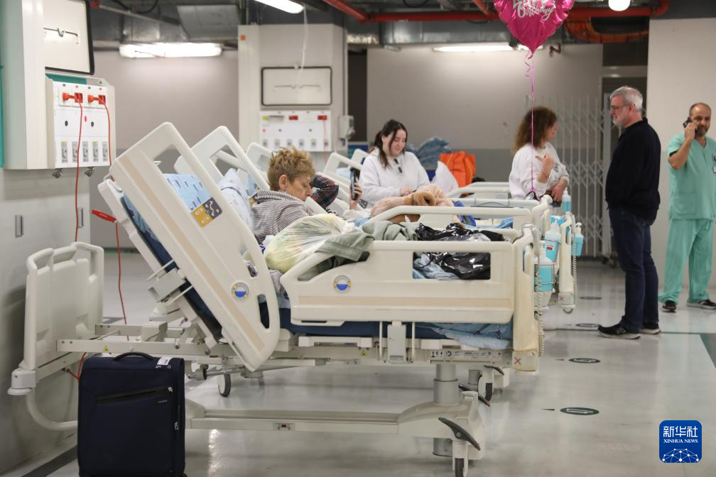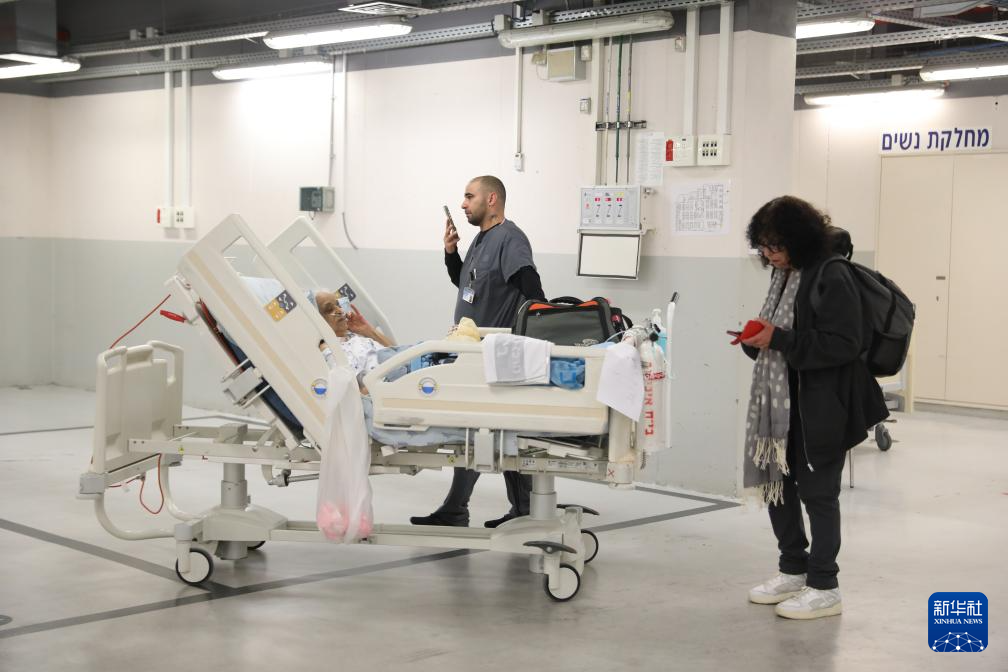 2月28日,在以色列特拉维夫的一家医院,病人被转移到地下停车场。新华社发(吉德翁·马科维奇摄/基尼图片社)