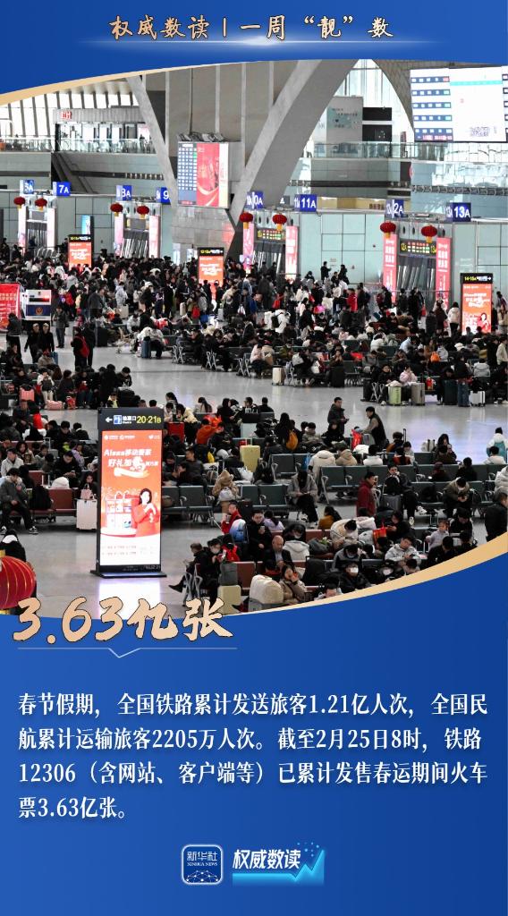 2月27日,全国两会新闻中心正式启用,3000多名中外记者报名采访全国两会;春节假期9天,全社会跨区域人员流动量为28.08亿人次;2025年全国环境空气质量实现历史最优……本周,这些数据最值得关注!