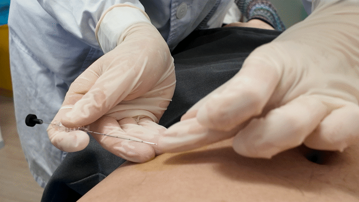 云南省中医药体重管理中心的医生在做穴位埋线治疗