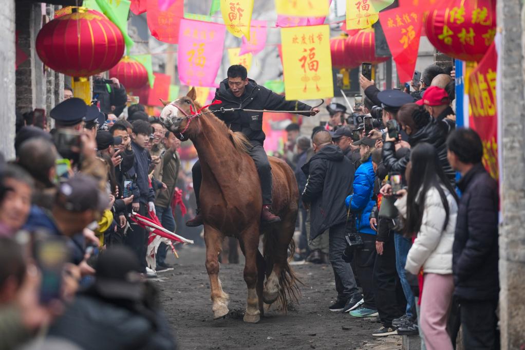 马蹄声在青石街上回荡,为春节画上圆满句号。村民们怀揣着美好祝愿奔向各自岗位,以“一马当先”之姿掀开崭新一年。