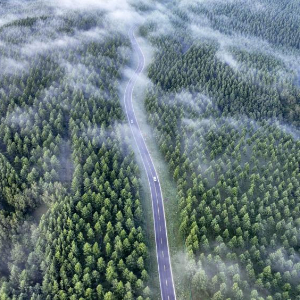 2024年7月26日拍摄的塞罕坝国家级自然保护区景色(无人机照片)。夏日清晨,位于河北省承德市的塞罕坝国家级自然保护区满目青翠,浩瀚林海壮美如画。新华社发(王立群 摄)