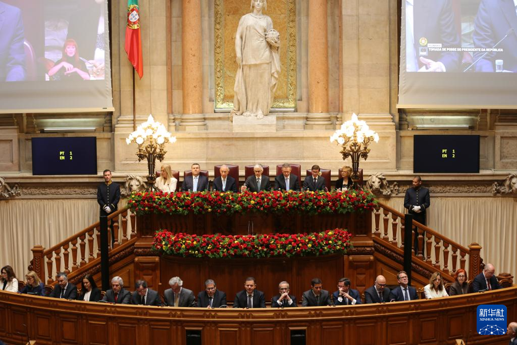 这是3月9日在葡萄牙里斯本拍摄的葡萄牙新总统安东尼奥·若泽·塞古罗宣誓就职仪式现场。新华社记者 荀伟 摄