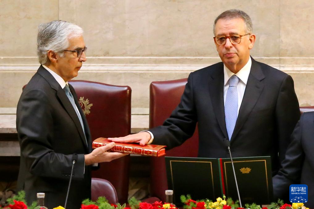 3月9日,在葡萄牙里斯本,葡萄牙新总统安东尼奥·若泽·塞古罗(右)宣誓就职。新华社记者 荀伟 摄
