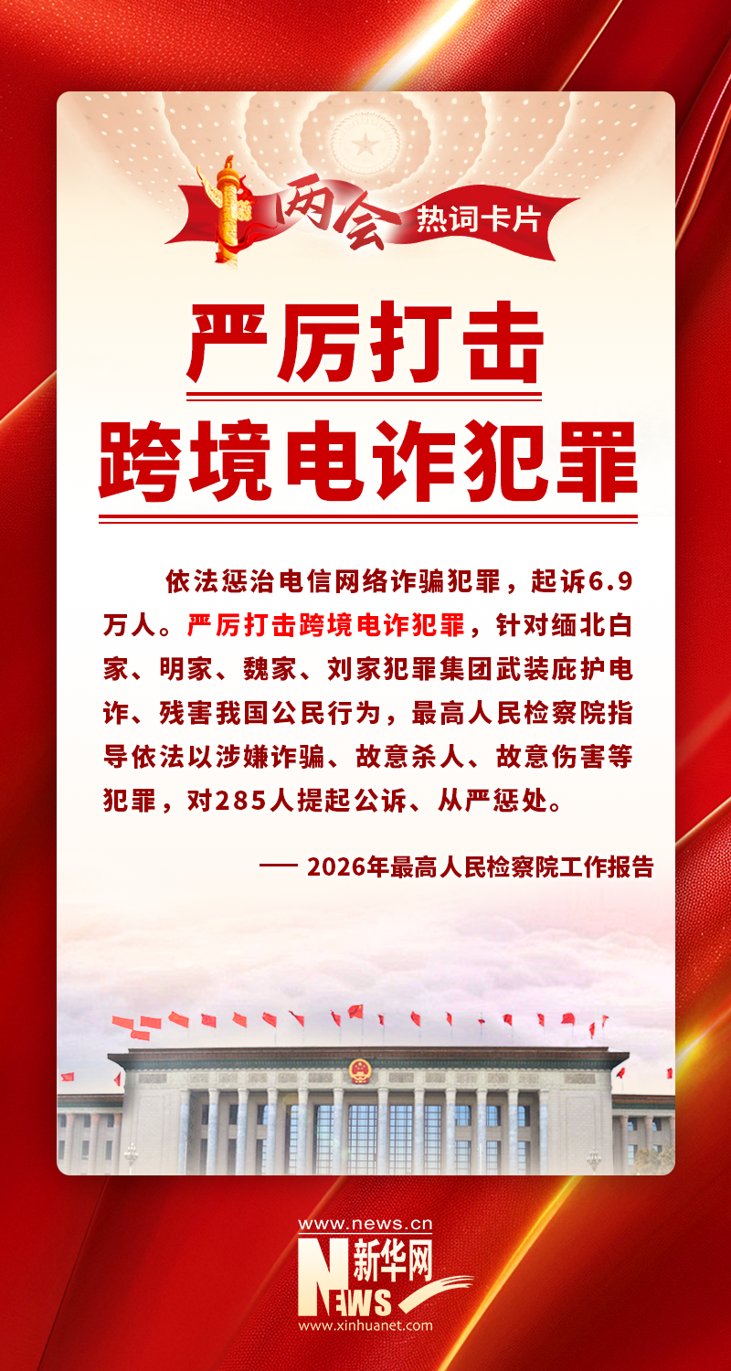 最高人民检察院法律政策研究室主任、工作报告起草组负责人杨剑波:电诈犯罪无孔不入,人民群众深恶痛绝。2025年,检察机关协同有关部门共起诉电诈犯罪6.9万人,并对缅北“四大家族”285人提起公诉。目前,缅北“四大家族”犯罪集团案已全部进入司法程序,缅北明家、白家犯罪集团16人被判处死刑立即执行。