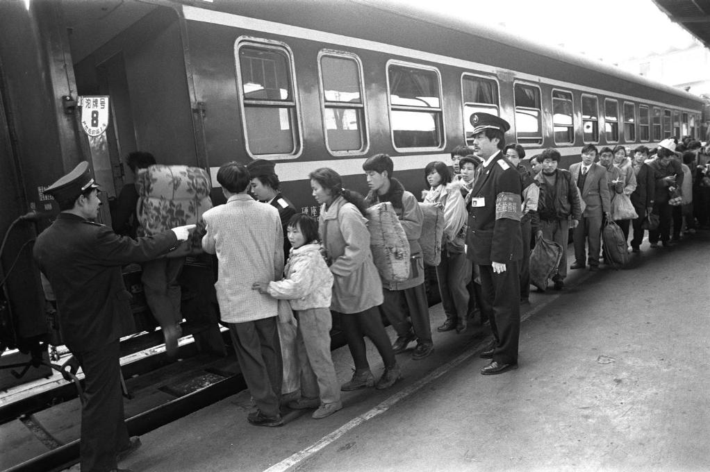 1993年1月12日,北京火车站开始进入春运高峰,旅客在排队进站。新华社记者 唐召明 摄