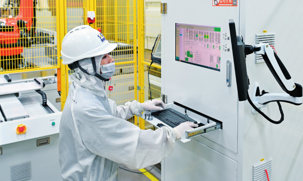 工作人员在蜂巢能源科技(盐城)有限公司生产车间内操作智能生产设备(资料照片)李博摄/本刊