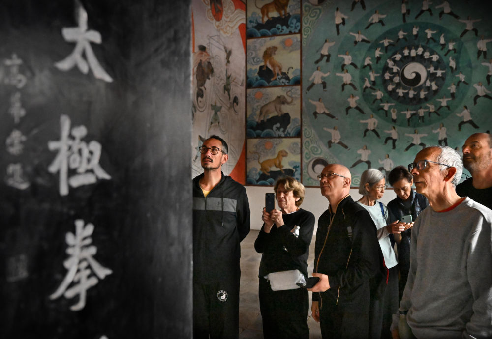 ↑2024年4月19日摄,来自法国的太极拳爱好者们在河南陈家沟太极拳祖祠内参观。