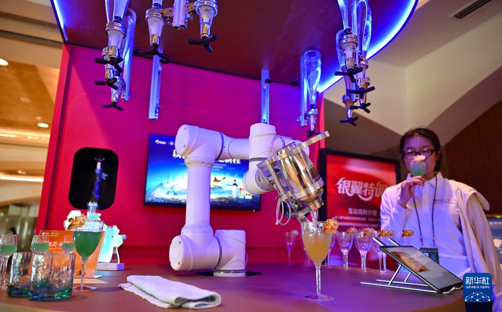 3月25日,一款调酒机器人在博鳌亚洲论坛大酒店为参会人员调酒。