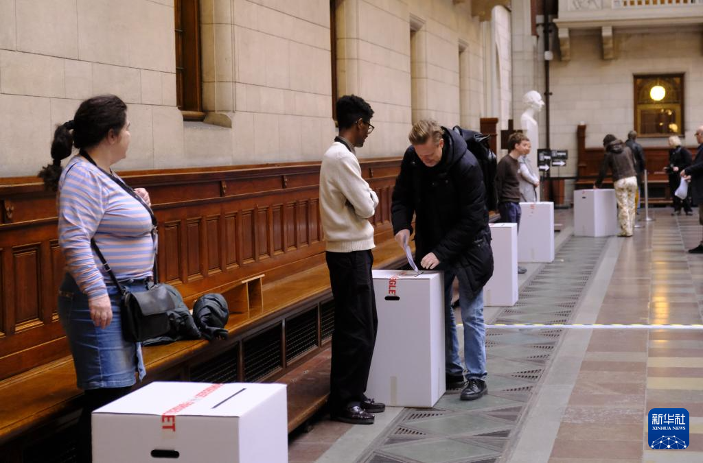3月24日,在丹麦首都哥本哈根的市政厅,选民将选票投入票箱。新华社发(刘智超摄)